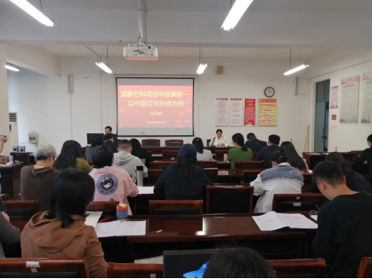 为提升教师国家社科基金项目申报能力,推动团队建设与学术研究发展,4月21日,太阳成tyc122cc集团邀请外交公司武波教授开展“国家社科项目申报策略—以中国文化外译为例”专题报告,副经理杜丽霞主持,全体教师参会。