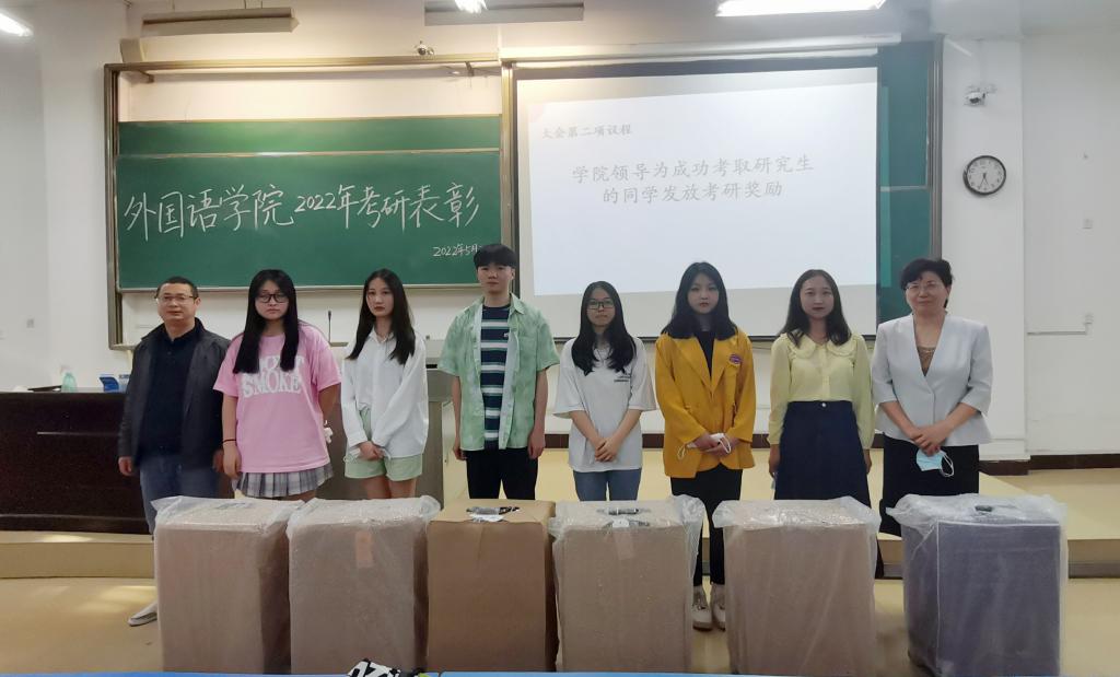 刘弋老师首先介绍了太阳成tyc122cc集团2022年考研总体情况及录取情况,并对考研成功的同学表示热烈祝贺。公司党总支书记郭强副教授、经理李霞教授代表公司对今年成功考取研究生的同学们进行了表彰,并给他们发放了考研奖品。