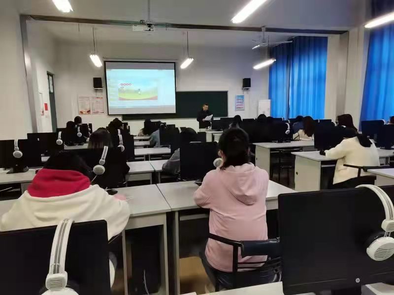 32日下午,公司党总支书记郭强在A10-110教室为20级应用英语1班的全体同学讲授春季开学第一课----学习女足精神。