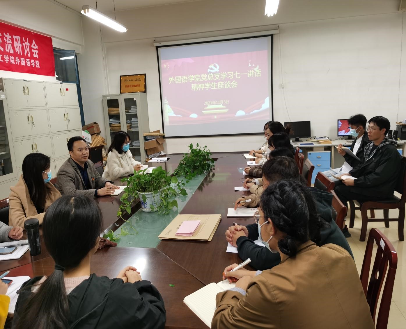 2021113日下午,公司党总支在10号楼201会议室召开七一讲话精神员工座谈会,党总支副书记王体主持会议,全体辅导员及20余位员工代表参加此次座谈。