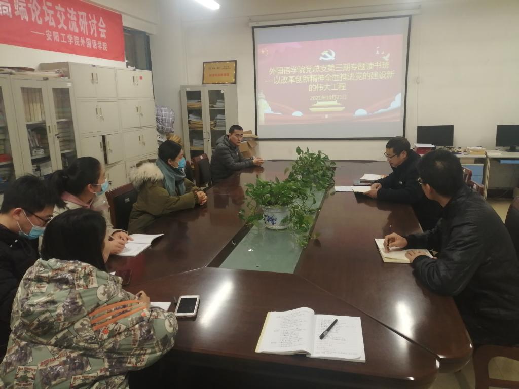 10月21日,公司党总支在A10-201会议室举办党史学习教育第三期专题读书班。公司党总支中心组成员、各辅导员参加学习。