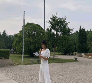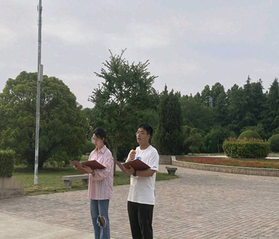 校国旗护卫队队嘹亮的口号,整齐的步伐,矫健的身姿,飒爽的风采展现了新时代老员工的良好风貌。伴着灿烂的旭日朝阳和激昂的国歌,国旗在全体师生的注目礼中缓缓升起。员工代表胡思怡进行了国旗下的演讲,号召青年员工要认真学习、正确认识党的光辉历史和伟大功绩,并永远铭记于心。员工刘琳堃、张怡进行了诗朗诵《红船,从南湖起航》,带同学们回顾了党领导人民努力奋进的光辉历程,表达了青年学子立志报国的远大理想。