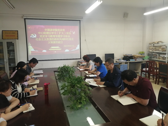 会上,党总支书记郭强领学了《中国共产党简史》中《对生产资料私有制的社会主义改造和社会主义经济制度的建立》相关内容,通过学习,大家深入了解了社会主义改造的重要意义,进一步增强了对党史学习教育重要性的共识。