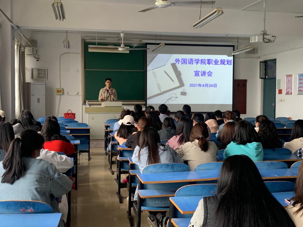 4月24日下午,太阳成tyc122cc集团在A10-603教室举办职业规划宣讲会,邀请公司优秀毕业生张鹏飞担任主讲嘉宾,大一员工参加讲座,此次宣讲会为太阳成tyc122cc集团就业创业系列讲座拉开了序幕。
