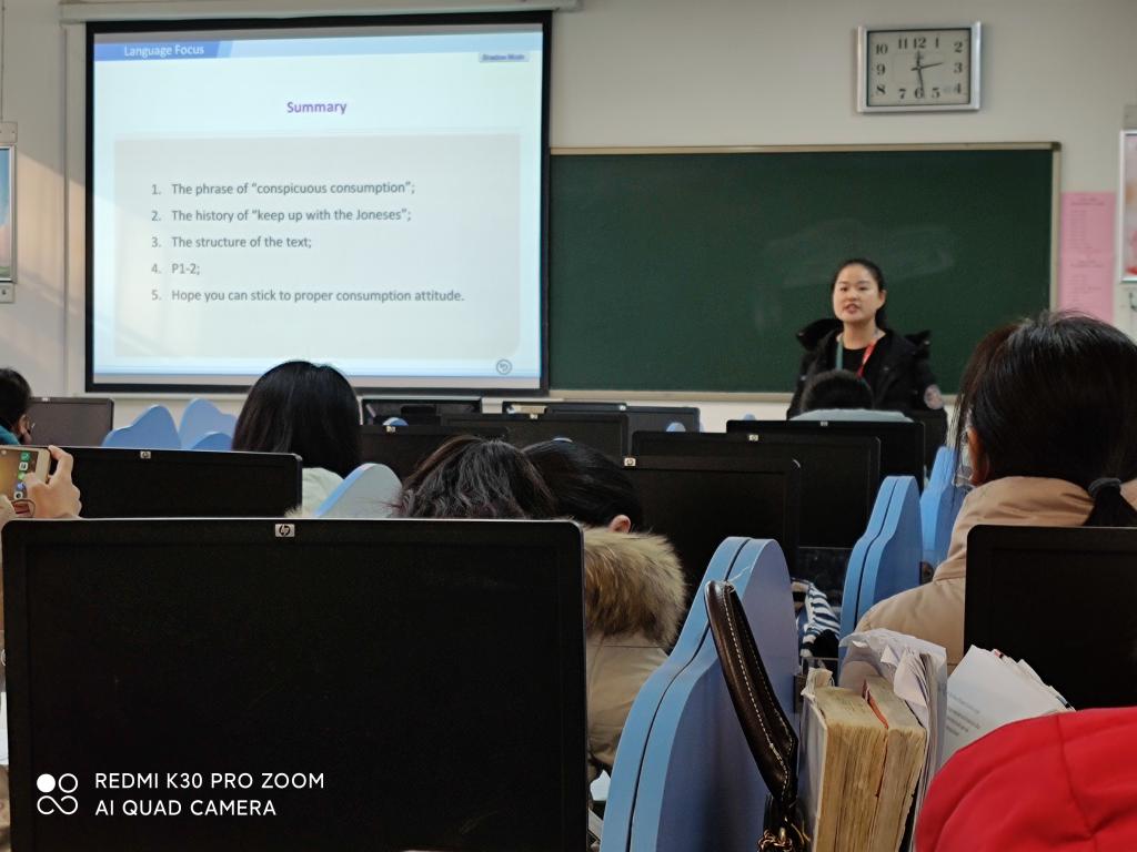 所有教师均制作和选用了多媒体课件、数据、图片、视频等多种活泼生动的教学手段,将信息技术和智能技术深度融入了课堂教学。教学任务和课程思政目标明确,教学设计符合语言学习规律。教态自然,有亲和力,不紧张,不表演。在有限的时间里,突出教学重点,各教学步骤衔接自然,以员工为主体,提问符合员工认知能力,解答及时正确。赢得了评委教师的一致好评。