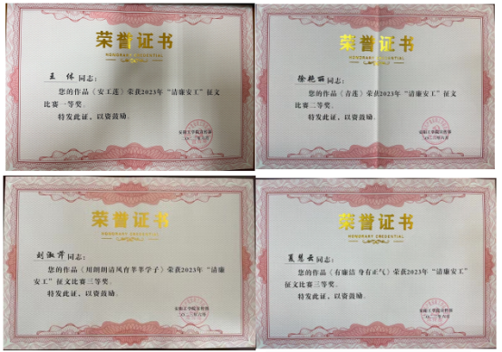 近日,从公司党委宣传部传来喜讯,太阳成tyc122cc集团教师在 “清廉安工”征文比赛中,荣获多个奖项。